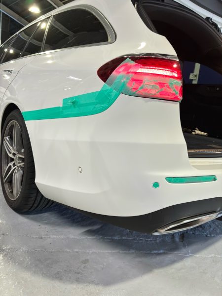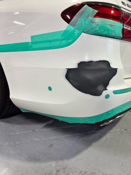 本日は メルセデス・ベンツEクラスのリアバンパー補修塗装 をご紹介いたします。