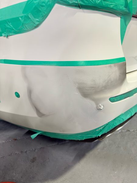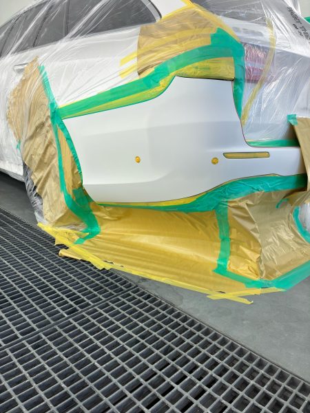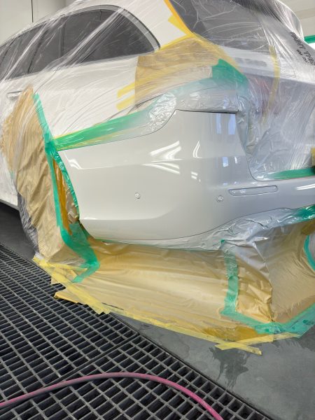今回は「部分補修でお願いしたい」とのご依頼をいただきましたので、リアバンパーの半分を中心に作業を行いました。