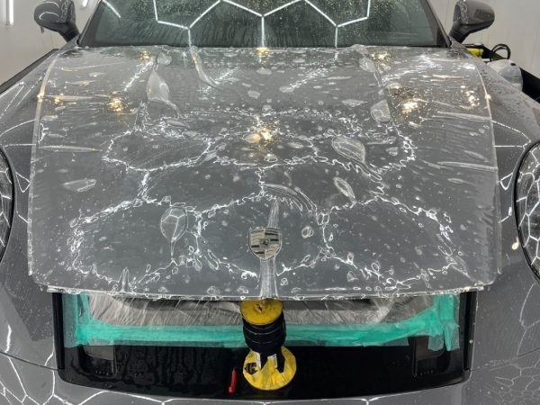 ポルシェ、992.2GTSに飛び石等からボディを守るプロテクションフィルムをフロントフルSET(ボンネット、フェンダー、バンパー、ヘッドライト)に施工しました。