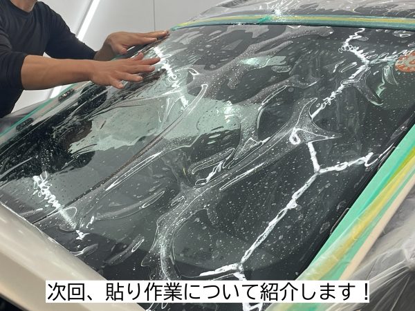 最終カットが完了すると、フロントガラスにピッタリ合うフィルムが準備できたので次回施工の様子について紹介します!