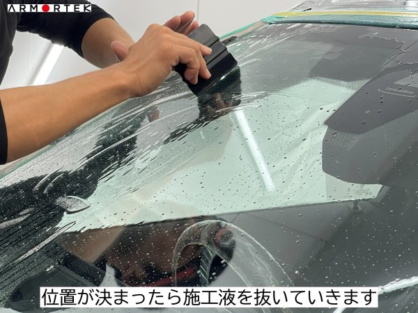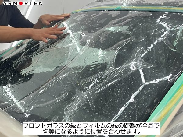 フロントガラスの淵とフィルムの淵の距離が全周で均等になるように位置を合わせます。