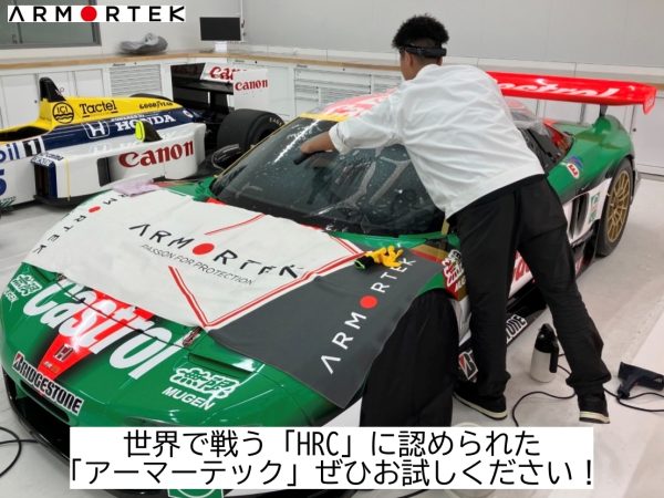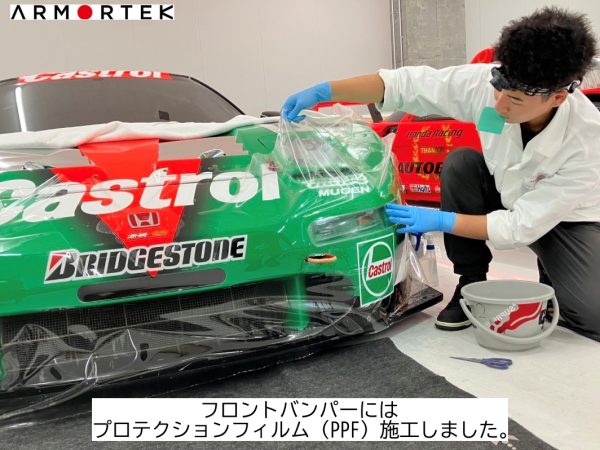 簡単に部品調達ができないGTマシンのフロントバンパーにプロテクションフィルム、フロントガラスに弊社が開発した「アーマーテック」を施工しました。