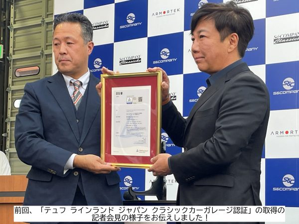 前回、「テュフ ラインランド ジャパン クラシックカーガレージ認証」を取得し、メディアの方をお招きし行った発表会の様子をお伝えしました!