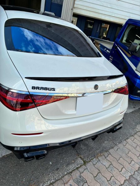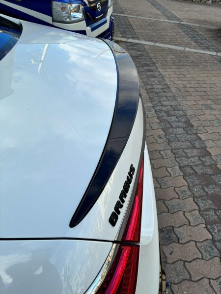 今回は メルセデス・ベンツのリアスポイラーとBRABUSエンブレムを、グロスブラックにカスタム した作業をご紹介いたします。
