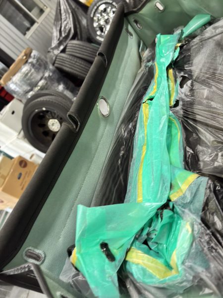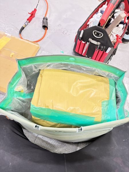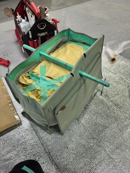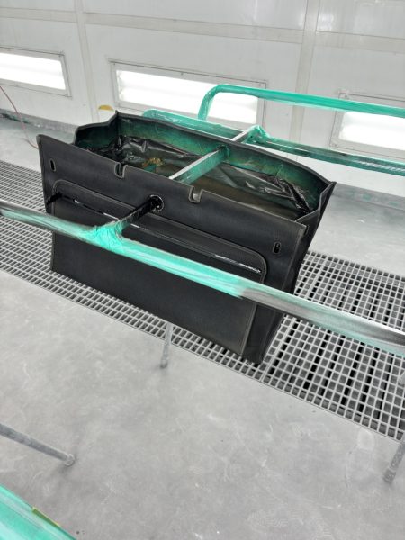 マスキング完了後、塗装しやすいようにセッティングを行い、