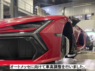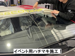 オートメッセに向けてフロントウインド」のハチマキ施工と車高調整、ホイール交換を行いました!