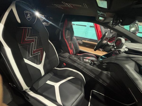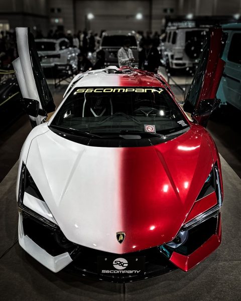 Lamborghiniでも初となる縦ツートンを施した唯一無二の1台。紅白のカラーリングは日本文化をイメージしており、ホワイトは永遠とエレガンス、レッドはスポーティさとパフォーマンスを表しているそうです。